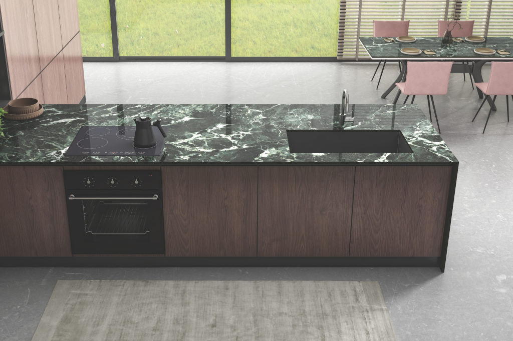 Emeraldo Verde is bold yet graceful, with emerald and moss tones flowing through crystalline veins. Inspired by nature’s untamed elegance, this slab is layered with life and texture in every glance.