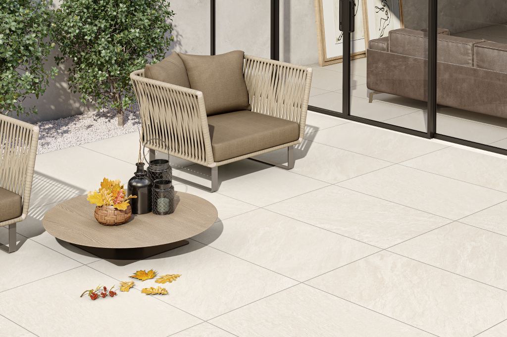 Sandrock Beige delivers a rustic grain in a light sandstone palette. Warm, tactile, and inspired by desert tones, it brings an inviting presence to outdoor zones.